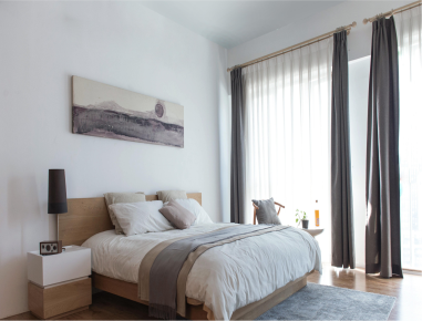 卧室家居:双人床 台灯 – 吸顶灯 床头柜 – 衣柜
