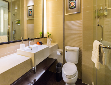 浴室设施:洗衣机 – 马桶 热水器 – 花洒 卫生纸 - 垃圾桶 香皂 - 香皂碟 浴帘 – 日常洗浴用品